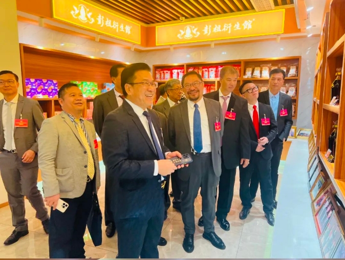 考察組在彭主席的引領下參觀養生健康館、彭氏名人館、廣東南藥館、名貴藥材館、衍生館等,進一步了解衍生健康產業園的主營業務、產品研發、生產經營、發展理念等企業概況。經過現場考察、與彭主席溝通交流后海外僑胞和港澳臺地區同胞對衍生健康產業園的發展給予了高度評價和贊賞,同時衍生健康吸納各方建議全方位推進品牌建設,更好打造品牌影響力。
